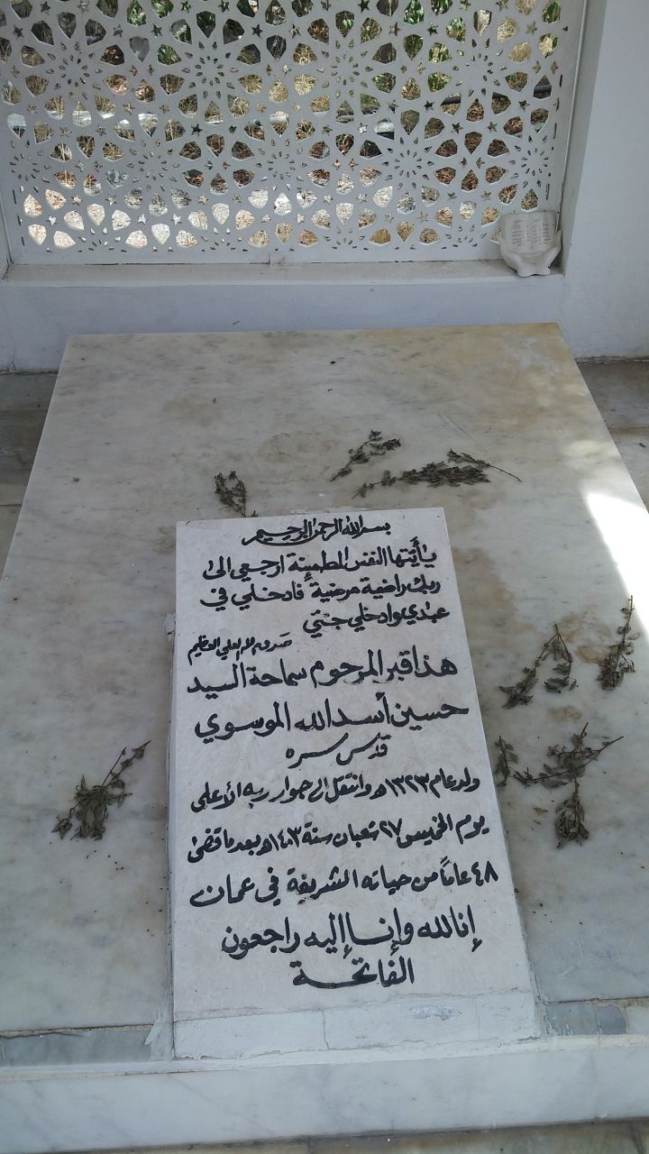 An Alims grave inside & his tombstone Syed Hussain Asad Al Moosavi who led the Jamat for 48 years & gifted his ring to his Khadim on the last day of his life